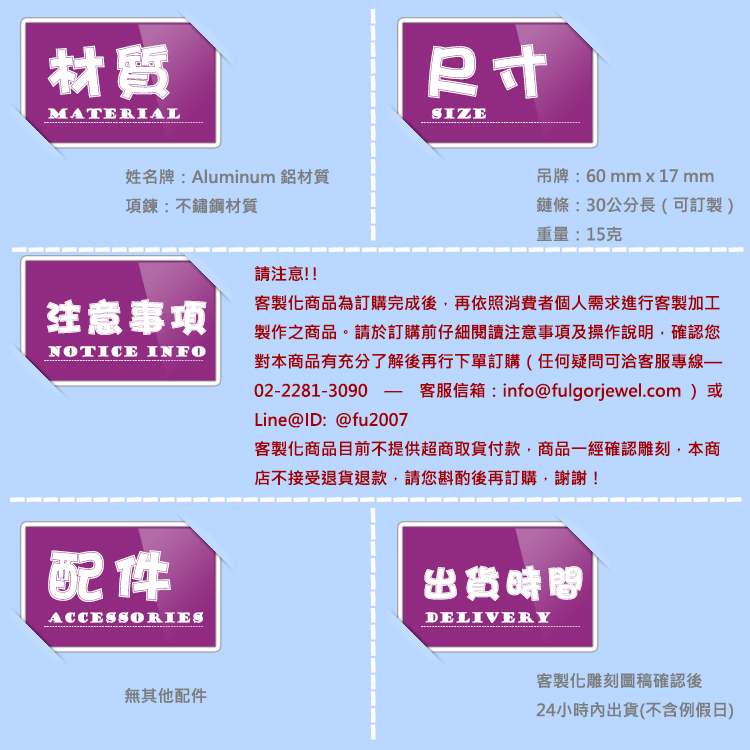 客製化商品一經雕刻,不能修改,也不接受退貨退款,請您考慮清楚後再訂購,謝謝