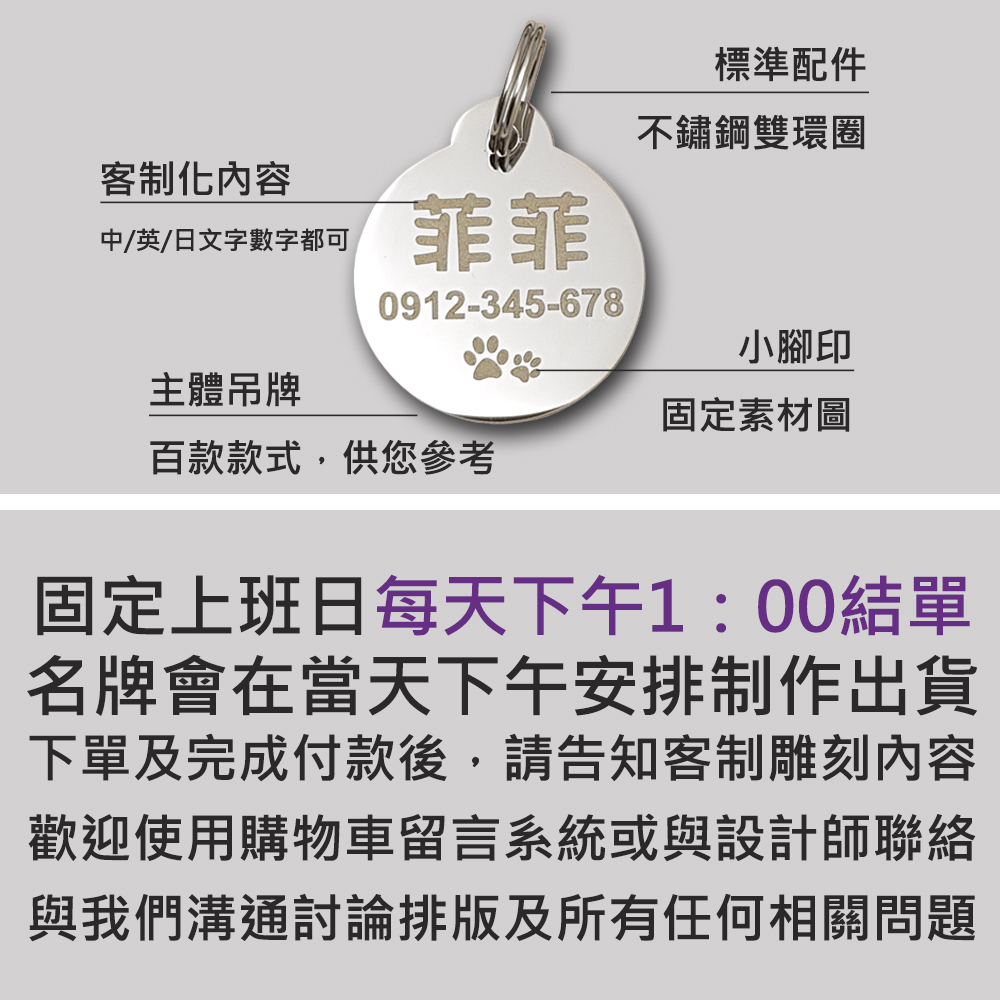 ***請在下單完成後,提供訂購單號及要雕刻的內容至客服,我們會安排製作排版圖與您確認,確認無誤可以後才會製作寄出。請您仔細核對名字及電話,謝謝***